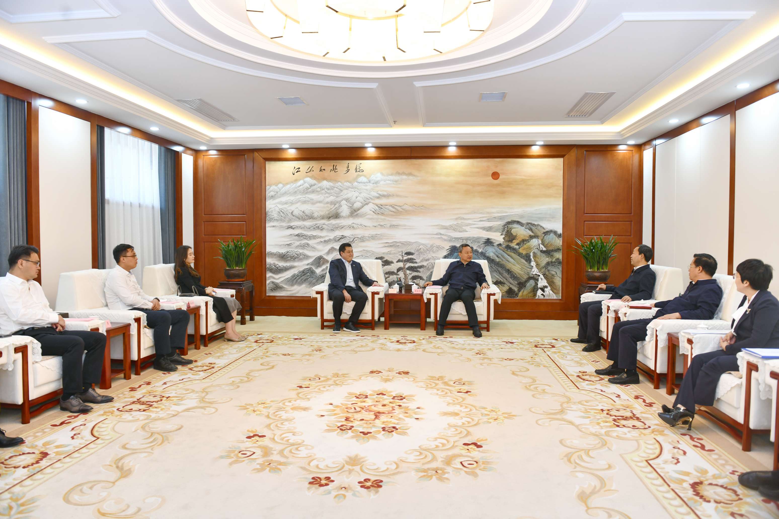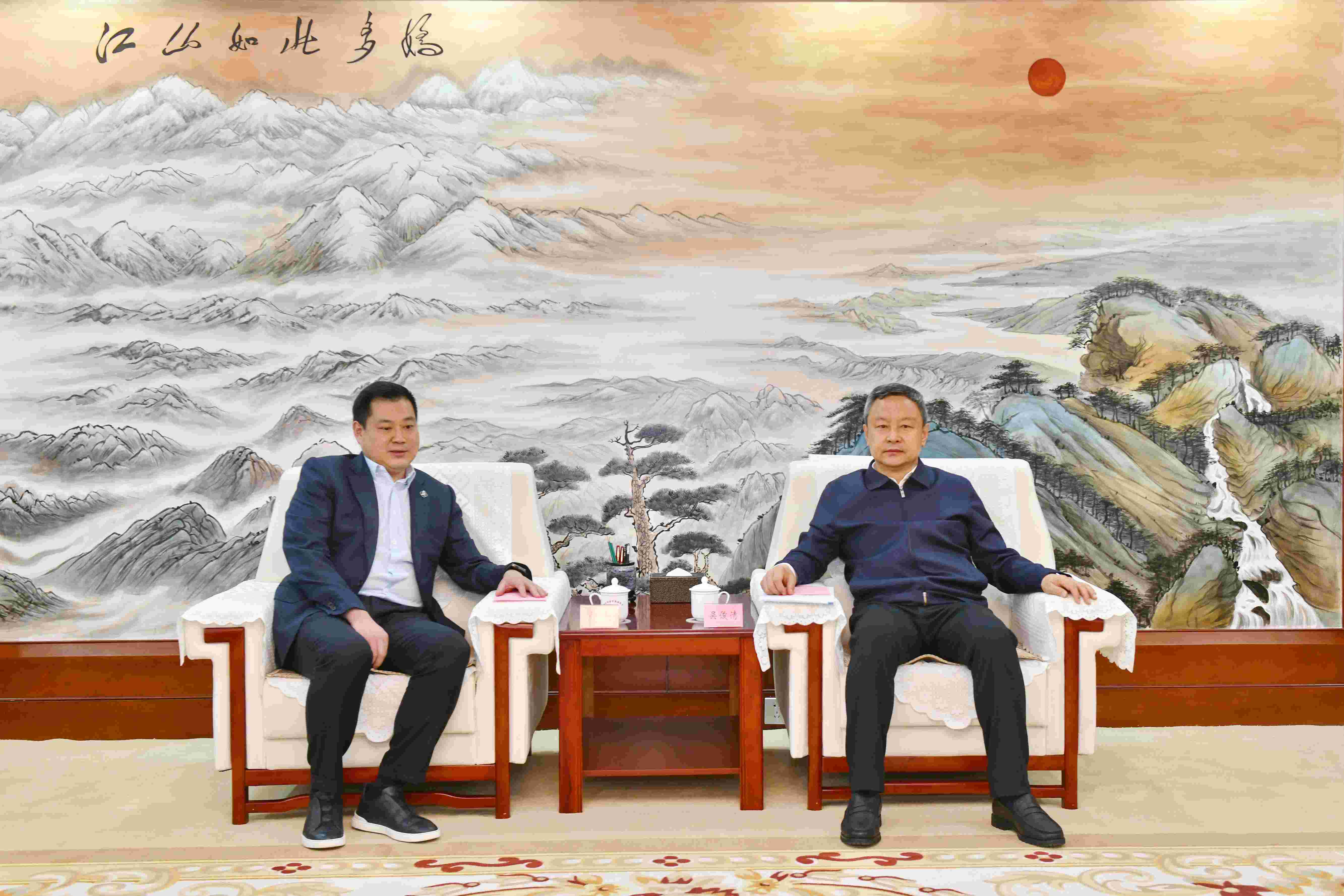 5月20日,嚴(yán)昊主席與山西省晉中市委書記吳俊清,市委副書記、市長常書銘舉行會談,雙方就如何搶抓山西發(fā)展新機(jī)遇,助推晉中經(jīng)濟(jì)高質(zhì)量發(fā)展進(jìn)行深入交流。